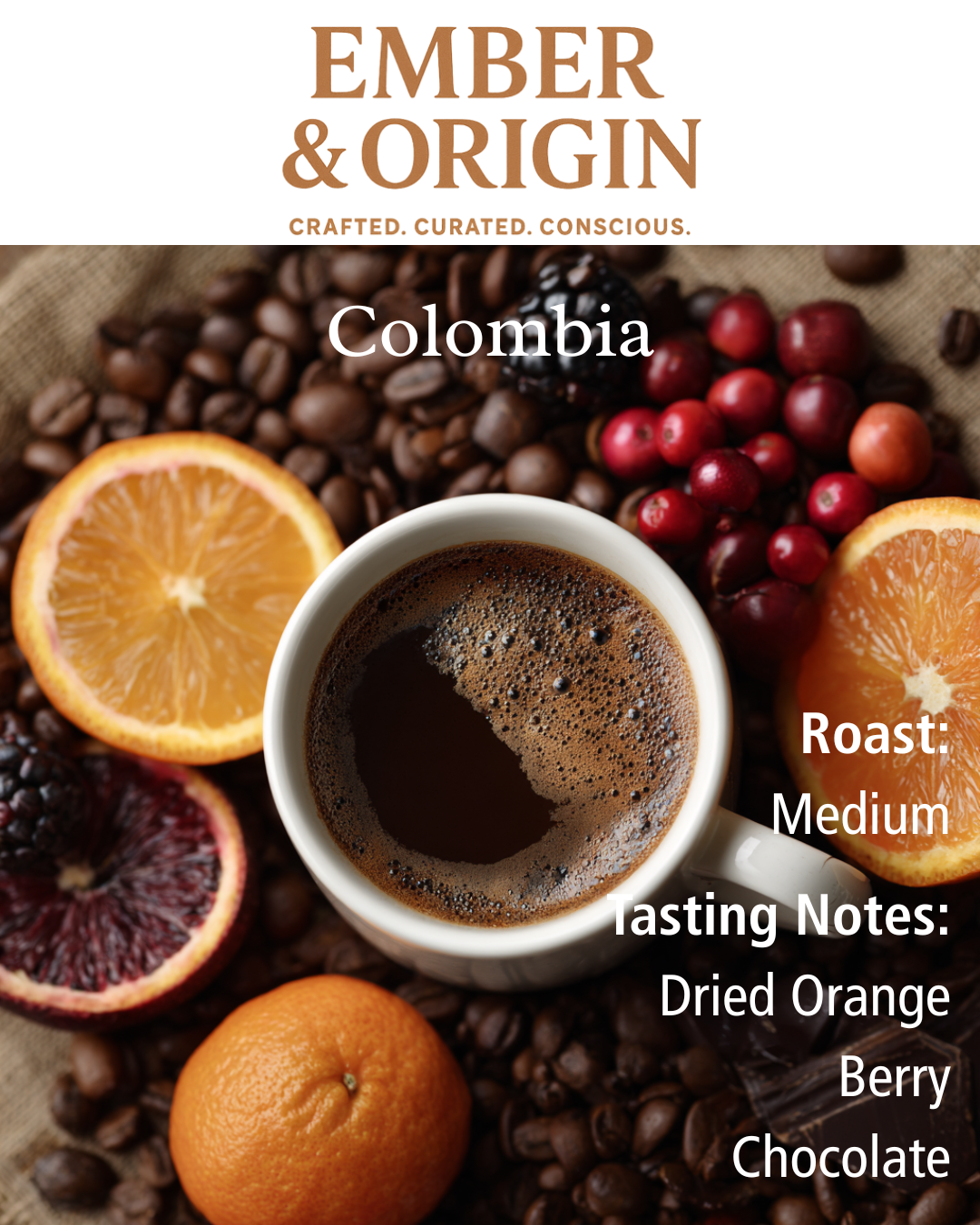 Dried orange, berry, and chocolate mingle in a smooth medium roast — vibrant, rich, and effortlessly drinkable. If you like your coffee with a little zing.