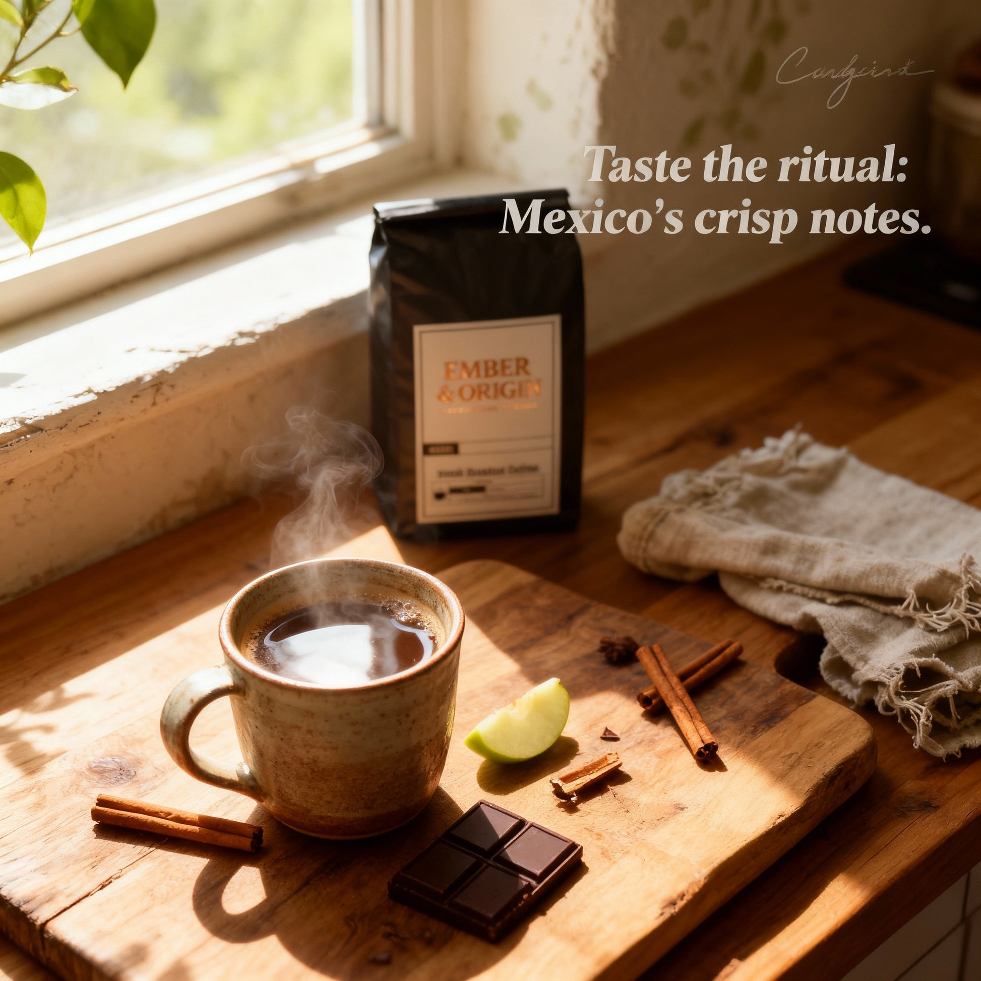 Rich chocolate with a dash of cinnamon and a crisp green apple finish — comforting with just the right kick. If you like your coffee with a little personality.